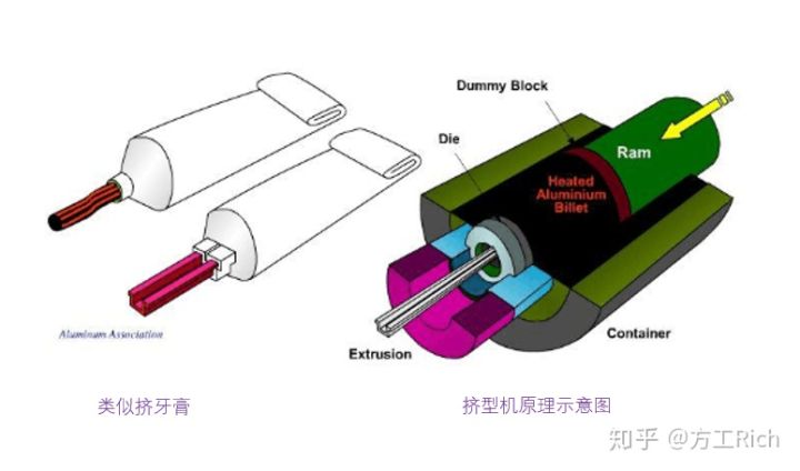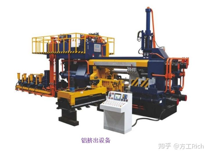 將鋁棒(或銅)加熱到再結(jié)晶溫度以上進(jìn)行擠壓,迫使金屬產(chǎn)生定向變形,從模具的??字袛D出,再經(jīng)矯直等工藝獲得制品的方法。