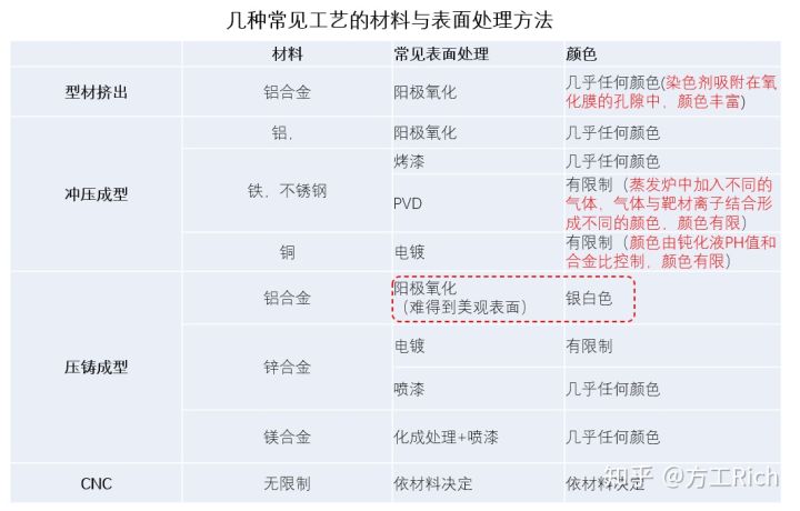 請(qǐng)注意上圖紅色字體。上圖紅色虛線框說明的是壓鑄鋁合金,因材料流動(dòng)性需要,材料中含有硅,不能氧化上色。采用脫硅氧化,氧化膜也會(huì)發(fā)暗,有黑點(diǎn),光澤性不好。因此,壓鑄鋁合金極少用在外觀要求高的場(chǎng)合。